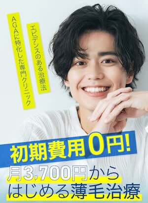 | AGAスキンクリニック | 月3,700円〜 (以降6,200円〜) | × | 発毛実感率99.4%※4/オリジナル発毛薬有り | 実績重視・対面診察重視 |