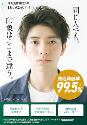 >>> 発毛実感率99.5%の圧倒的データ「Dr.AGAクリニック」