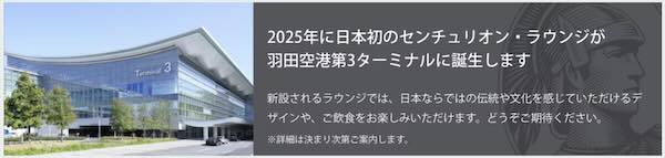 - 日本初「アメックスセンチュリオンラウンジ」2025年誕生!