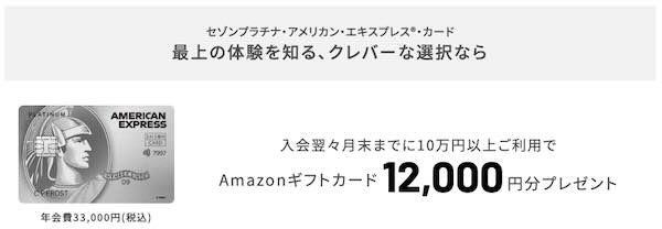 - 【セゾンプラチナ・アメリカン・エキスプレス(R)・カード】Amazonギフトカード¥12,000がもらえる紹介専用リンク
